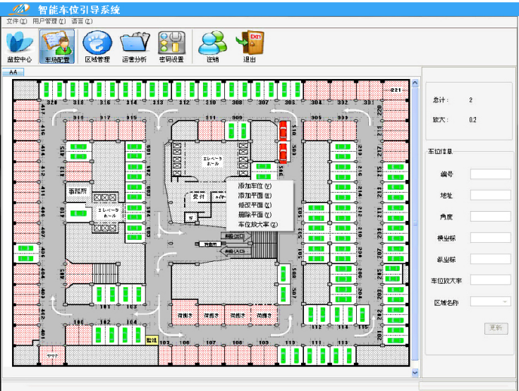 在系統軟件中,可以直觀地顯示整個停車場的使用情況,軟件中可以加載整個停車場的平面圖,實時、動態地顯示出停車場內每個車位的占用、空閑信息。